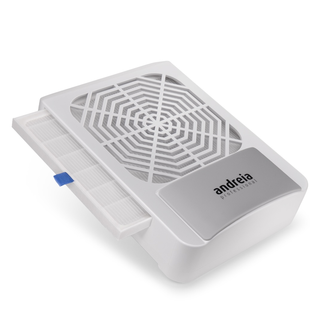 Aspirateur à ongles avec 2 vitesses : normale et haute, haute aspiration. Tenue de main en silicone et un filtre remplaçable. Faible bruit, durable et facile à nettoyer.