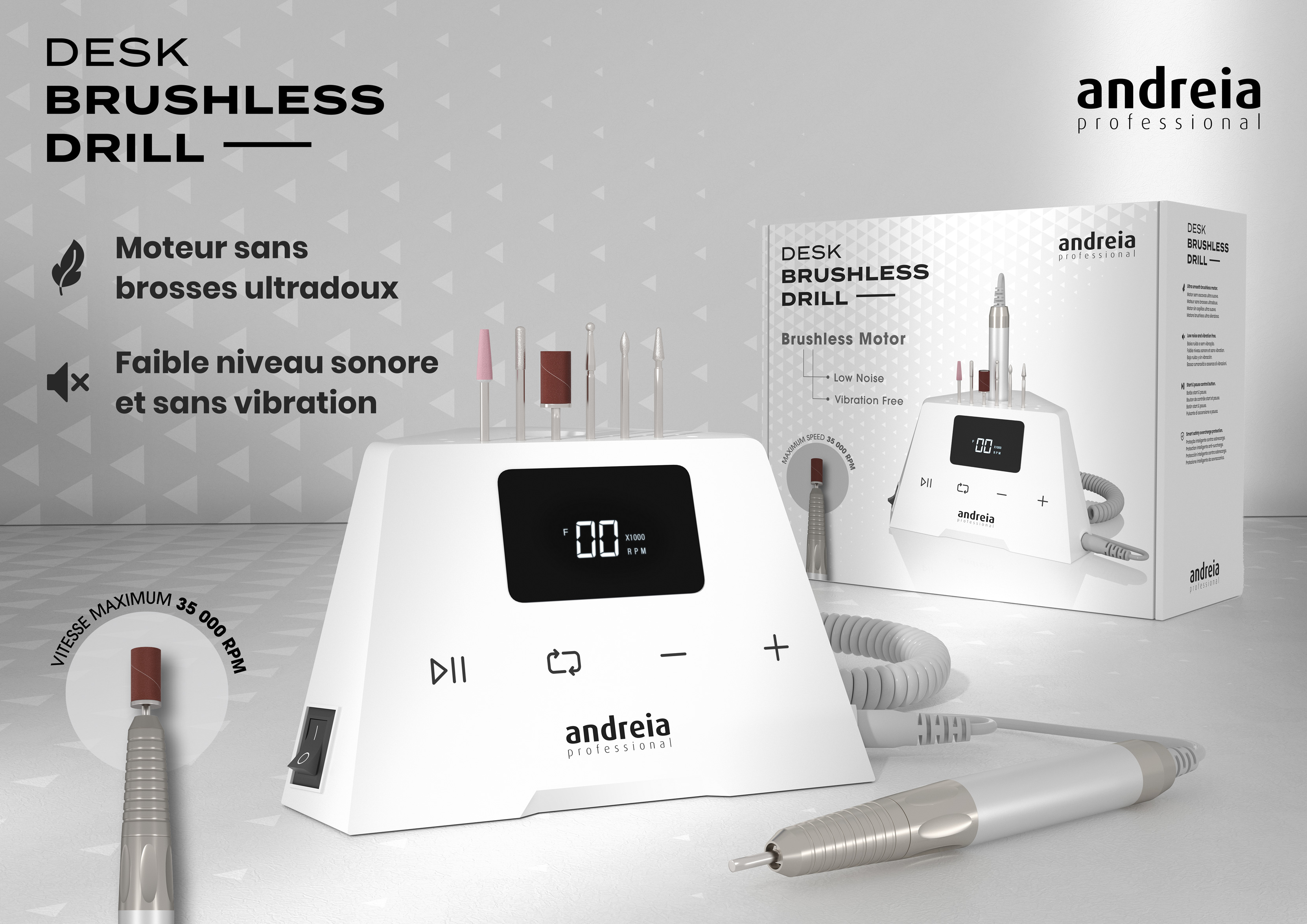 1Desk Brushless Drill est un appareil de table avancé conçu pour offrir une expérience exceptionnelle de polissage des ongles. Équipé d’une manette entraînée par un moteur de dernière génération, sans brosse (brushless), ce dispositif offre des performances douces, sans vibrations et silencieuses. Avec sa fonction double sens de rotation, son bouton start/pause et son design ergonomique, il convient aussi bien aux professionnels gauchers que droitiers.