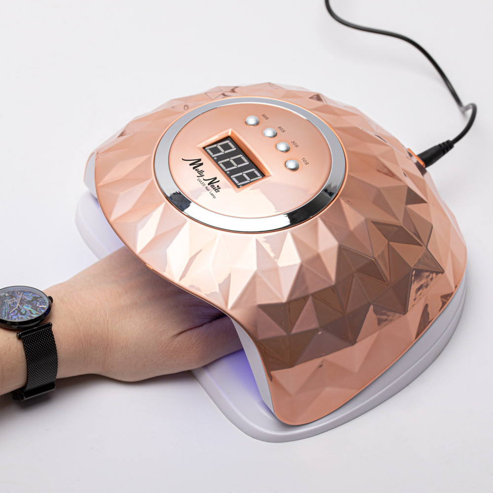 Découvrez un appareil pratique et design qui ne vous laissera jamais tomber. Il s'agit de la lampe Molly Nails avec une énorme puissance de 248W et 60 led's qui fonctionnent dans deux gammes d'ondes pour assurer un durcissement parfait des vernis hybrides, des gels et des gels acryliques.